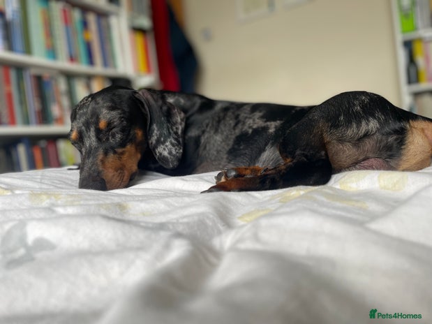Extremely handsome dapple dachshund for stud. Stunning colours and markings on coat. Healthy, vibrant and energetic. Wonderful temperament.