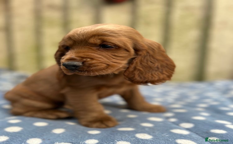 Stunning F1b Cockerpoo Puppies ready to leave on or around 19th December. Our Princess has given birth to beautiful litter of Fox Red F1b Cockapoo puppies who we need to find new homes for when they are 8 weeks old. Absolutely beautiful puppies with wonderful temperaments. They are extremely loving, affectionate and cuddly and will make the most wonderful family pets. We