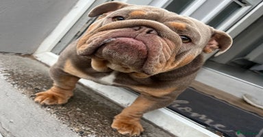 3 yr old tri coloured British bulldog . From a breeder who has used her for puppies . Excellent breeding , tri coloured, fab with kids and other dogs and cats . Thrives attention 24/7 . Was taken out