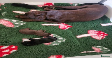 We have nine Labrador pedigree puppies, there are black, champagne and chocolate. There are girls and boys available. Mum and dad are both KC registered but puppies are not. Puppies have been wormed and flee treated. Puppies have been vet checked and microchipped. Dad has 15 championship winners in his 5 generation pedigree, these are all beautiful puppies We have chocola
