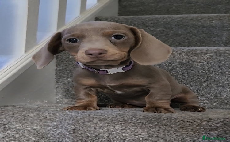 We are pleased to announce the arrival of our stunning minture daschunds babies the mother is our beautiful blue dappple girl Rosie and dad is a stunning chocolate and tan boy . Our puppies will come fully health checked , 1st vaccination , micro chipped , wormed to date . We have available 2 chocolate and tan girls 🩷 1 chocolate and tan boy 💙 sold 1 silver dapple gir