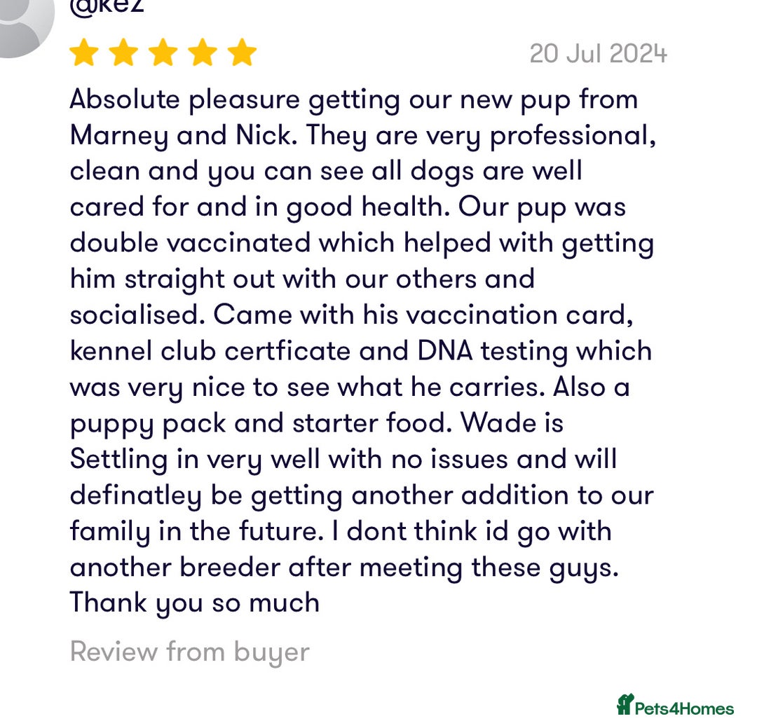 By raising puppies in a home environment, we ensure they are used to the rhythm of daily life — from hoovers to cuddles — so they settle quickly and comfortably into their new homes. Whether you’re looking for a loyal companion, a family pet, or a new adventure buddy, our pups are raised to be loving, social, and ready for life’s journey.