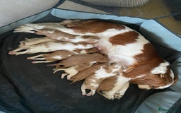 Our Beautiful Pet Cavalier King Charles Spaniel has had a litter of 7 Puppies. Dad is also our Pet F1 Cavapoo Boy. Both Parents can be viewed with their puppies. They will come fully health tested wit