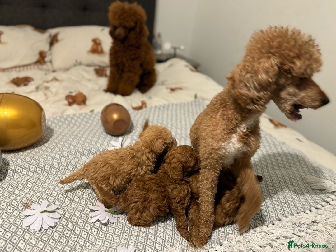 ⭐ JUST ONE BOY LEFT ⭐READY TO LEAVE 10TH DECEMBER ⭐️Gorgeous red minature poodles. 3 boys and 2 girls Born on 15th October and ready to leave 10th December .Poppy is an amazing mum to her puppies. Poppy is a family pet and a very loyal and loving dog . Puppies are brought up with children age 5 and 9 and will be well socialised to daily life . Dad Harry has a gentle te