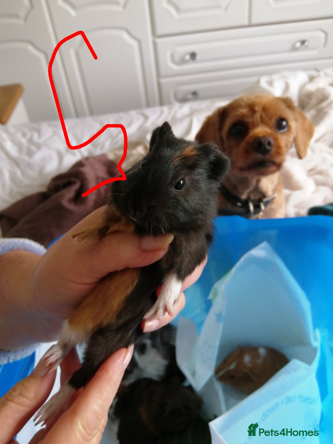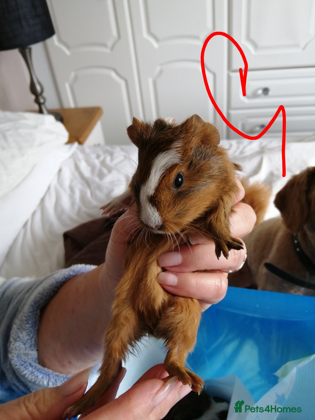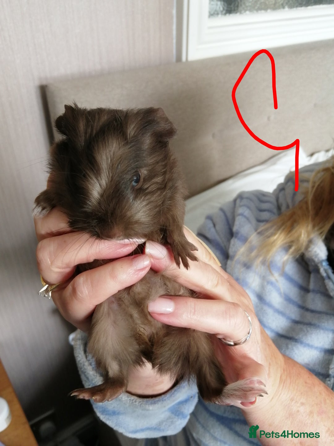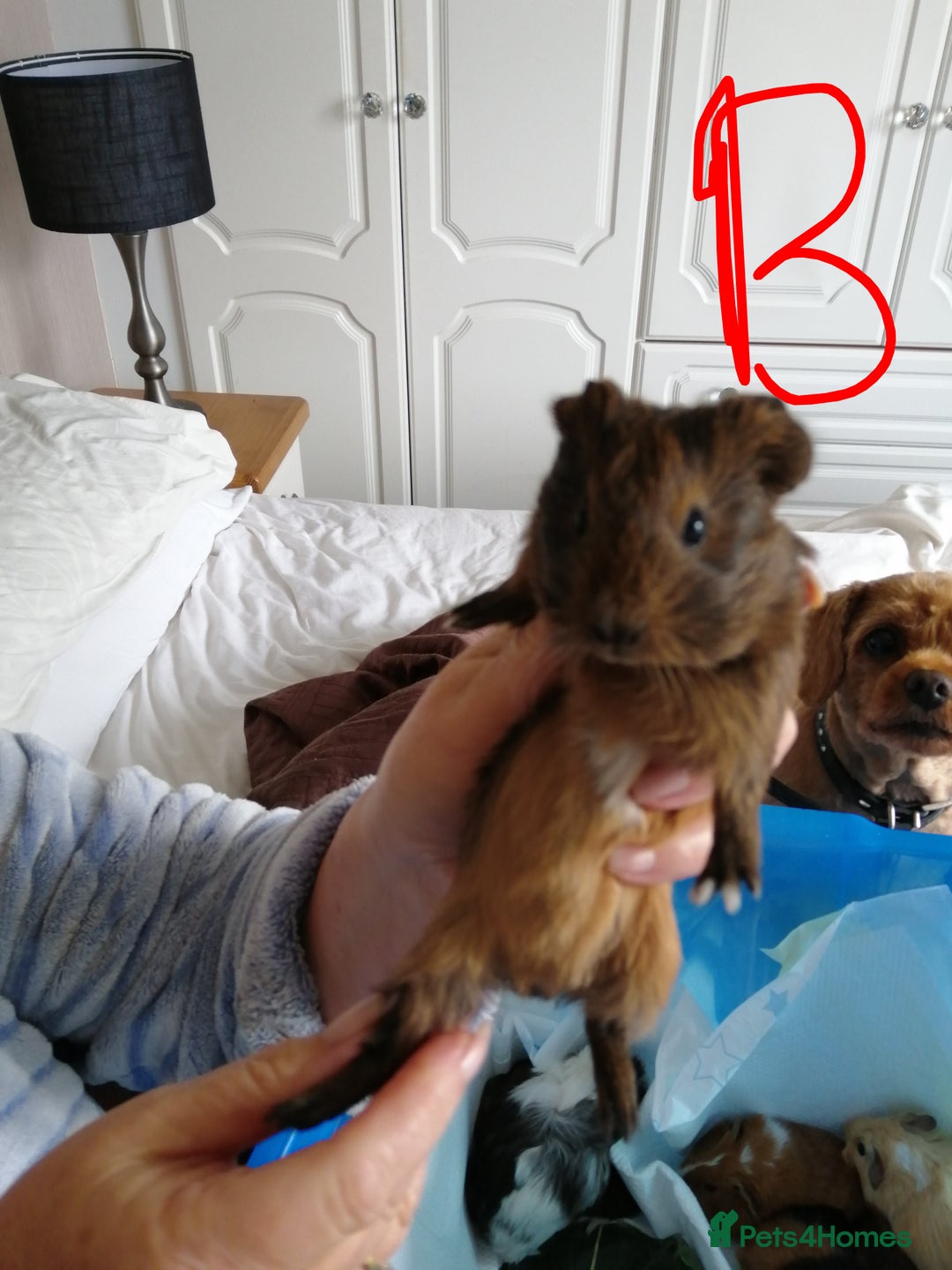 Very Furry parents... eating well guinea pig cereal , carrot, lettice expecially Romanian make... cabbage we have mixed sex in the litter as In picture
