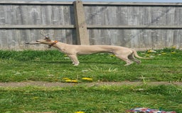 Whippet For Stud - proven - (KC reg; pedigree) Fawn. 20 inches to withers. 13.3 kg Dorset. UK My stunning and gorgeously loving dilute fawn (with blue muzzle) best friend boy Whippet is six years young with a proven track record of fathering many large, healthy litters. With show and race lines in his heritage and a famous Polish dad, he throws striking, fast and beautiful pups. His calm and delightful temperament, a love of long runs and cosy duvets & a handsome, lean and healthy body make this beautiful Norfolk born Whippet the perfect father to your litter of puppies (Whippet or Lurcher). He is well loved and super loving in return. £250. This includes 2 successful, consecutive ties with payment due at 1st successful tie (ie day 1). In unlikely event of no pregnancy (scan proof required), revisit for free at bitch's next season. I offer a calm and informal indoor mating environment with no other dogs present of course. Please do ask for more photos or details of stud if needed and photos of all litters available on request. Located in Dorset