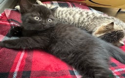 4 beautiful kittens 2 boys and 2 girls Tabby x 3 and one black and white Used to other cats and dogs . And young children 2 fluffy girls left