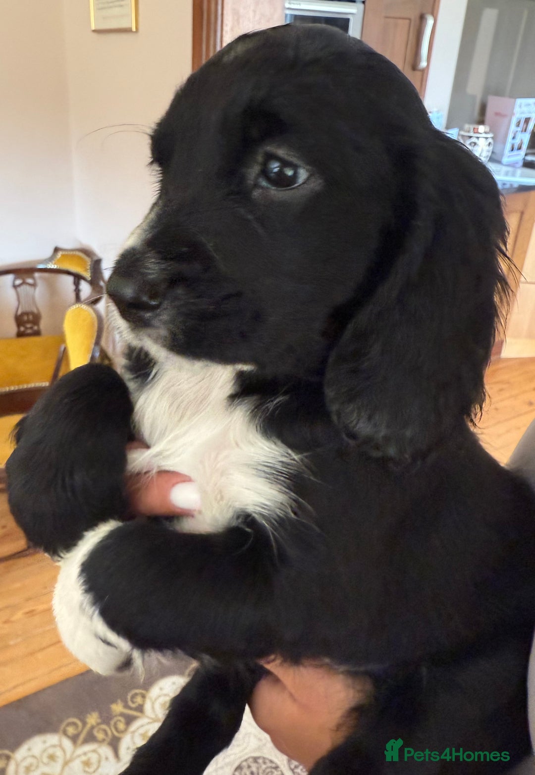 **2 beautiful little boys left available** 7 Beautiful working cocker spaniel puppies. Both parents are lovely examples of the breed, we take the dam out every season where she can beat/pick up. Both parents are lovely natured, with great pedigrees. Puppies have been legally docked and will be kc registered and microchipped by the time of finding new homes. Black boy no