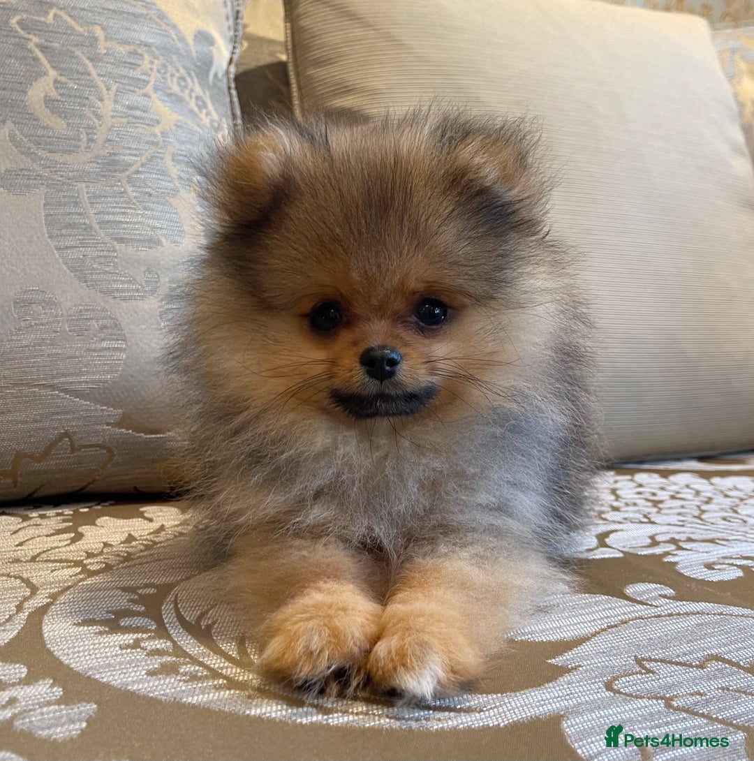 I have a lovely boy Pomeranian puppy looking for his forever home. We have mum and dad. Dad is tiny ****************** size. Both parents can be seen. These are our family pets who we adore very m