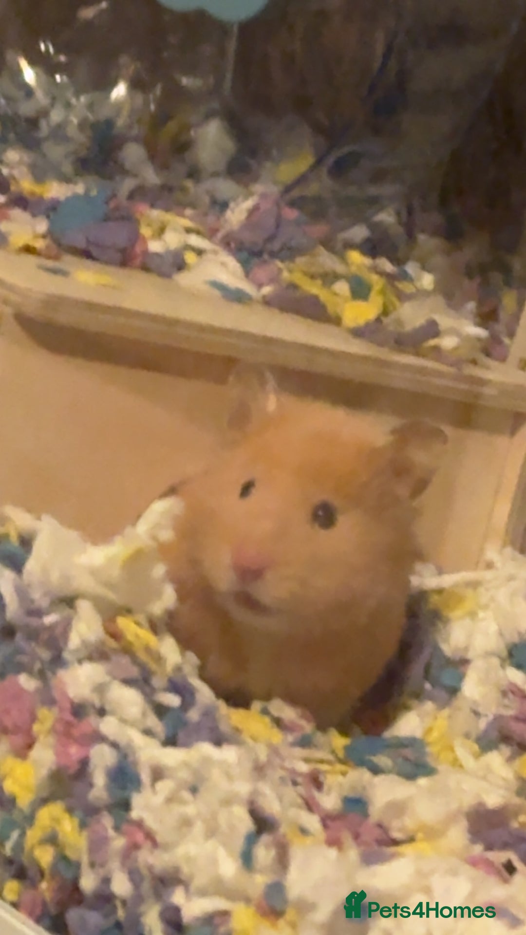 This female hamster is absolutely adorable! she doesn't mind being handled and loves attention! We were told that this cage would be perfect for here in short time use and now as she's gotten older we