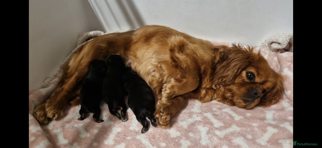4 boys 1 girl 2 Blenheim 1 girl 1 boy 3 Ruby boys Mother and father can be seen when coming to see pups Born 26th Oct 25 £2000 each Ready to be collected by ****************** Eve.