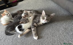 Female tabby kitten named Ethel. She's around 6 months old. Still a baby so very playful & loves cuddles. Unfortunately my mum is having to rehome due to not getting along with the other cat. They are
