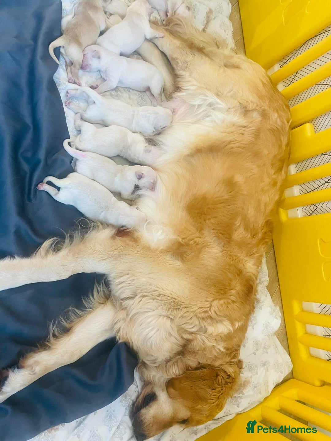 Our beautiful family dog Teddy is available for stud. Please check out his Instagram: Teddygoldenstud, this has all his up to date litters & ties. Teddy is a proud father to 219 pups from 32 litters and counting! The largest litter produced of 11 pups. (However please note that the litter size is determined by the female). We are also lucky enough to be proud owners to one of his sons! He's got a lovely white coat, long feathered legs and tail and strong build body. He is both showline and working line build. Both his parents are pure breed Golden retrievers. Father was KC registered and Mother was pedigree. We have supporting documents for Health testing on both parents and Teddy, KC papers for father and DNA testing on Mother. We have had private genetic testing done on Teddy with Laboklin. Teddy is not KC registered however we have him registered with The Pedigree Club and have supporting papers to show. All copies will be provided to you. GR-PRA1 - Clear GR-PRA2 - Clear NCL - Clear PRCD-PRA - Clear Muscular Dystrophy - Clear Teddy has a lovely temperment, has been brought up around kids since birth. He has a loving nature, enjoys walks and loves cuddles! All his vaccinations and Vet visits are up to date and is suberb in health. He is regulary treated for flee and worm. Most recent 6 monthly checkup 21st May 2025. We are happy to do mix breeding of similar sized dogs, so far Teddy has mated with Goldens, German Shepherd, Goldendoodle and Border Collie. £300 stud fee includes two matings 48 hours apart. Payment must be made in cash or bank transfer on the first successful tie. In the event of no tie, no money is taken. We also offer 1 free maiting on the females next season should the first fail. For natural maitings we do not force the dogs on top of one another and instead allow them to play freely and naturally come together. This allows for a stress free enviornment for both dogs. We provide assistance upon tie keeping both dogs calm. If you are interested in Teddy and would like to know more, please message me on my mobile and we can have a chat! Happy to do a video call so you can see Teddy before :) Please note we are not interested in puppy farms. Many thanks for viewing our Ad.