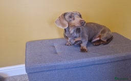 Dinky is a solid isabella and tan minature dashound who is absolutely fantastic character pure gentle dog to the females 😍 Dinky has many litters out there from natural matings but he can also offer artificial if needed. Dinkys has had loads of matings in his one year of mating and upto yet never ever has he had any unsuccessful!!!! Dinky is kc registered Both his mum and dad were PRA clear Dinky is Fully vaccinated Dinky is regularly Flead and wormed upto date Weight 5kg Dinky has been all tested to prove he can produce good size litters with outstanding colours and has many litters out there already ranging from 3 up to a massive 9 in a litter Dinky is fabulous with people and other dogs he really is one of a kind were so proud of our lovely family pet. He is very loved and very special to us he really is amazing and is smashing what he does that he enjoys so very much 😍 If anyone would like any other information please feel free to contact me on ************