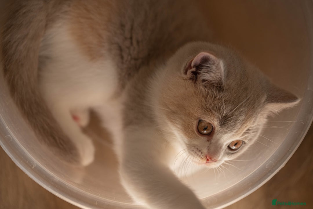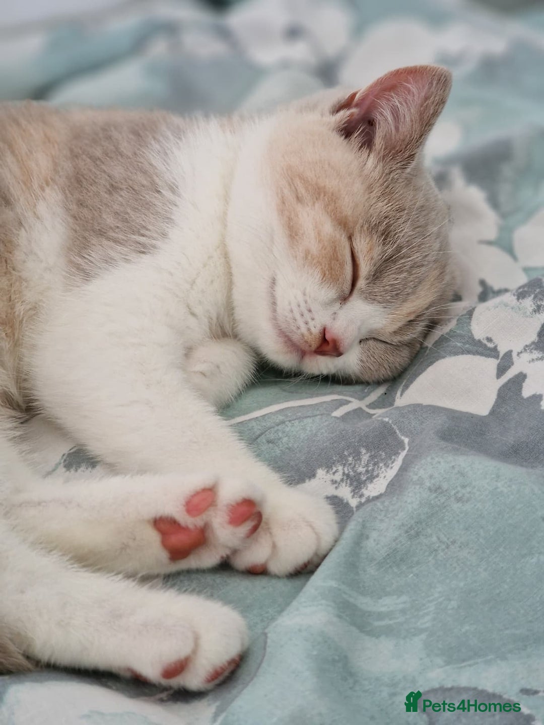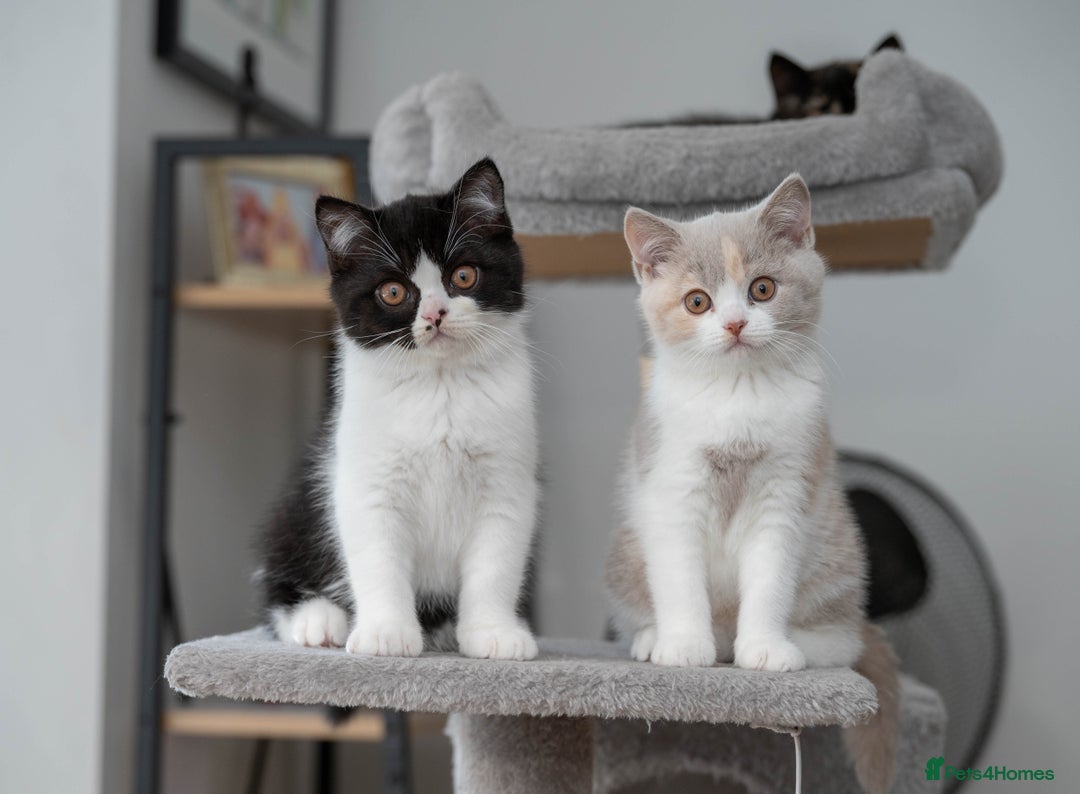 Fully vaccinated beautiful pastel calico female kitten ready to join your home. Feel free to get in touch and ask any questions. Kitten Pearl is super sweet. She has the sweetest dainty trot and loves to play. She'll seek us out for playtime and human company. Her pastel shades are fawn, beige, and white. Such a stunning tri colour British Shorthair kitten who will grow into the most gorgeous cat. 😻 Pearl is available for the right family. She is ready to become part of your loving family. She has been: 🪄 Vet-checked 🪄 Wormed and flea-treated 🪄 Fully vaccinated 🪄 Comes with a kitten pack including her favourite toys and food 🪄 Litter trained 🪄 Lifetime support from us 💖 Don't miss out on the chance to be Pearl's forever home. She has carefully handled from young so is socialised, used to human touch and affection, and is being raised in a very loving home. She is being fed a high quality diet. 😻 Mum and Dad are pedigree British Shorthairs. 🩷 Mummy is the most beautiful and sweetest chocolate brown and white cat. She is super playful and energetic, and is the best Queen caring for her kittens. 💙 Daddy is a very calm and gentle gorgeous ginger, cream and white cat. The kittens definitely have a mixture of Mum and Dad's personalities. No refundable deposit to reserve of £300
