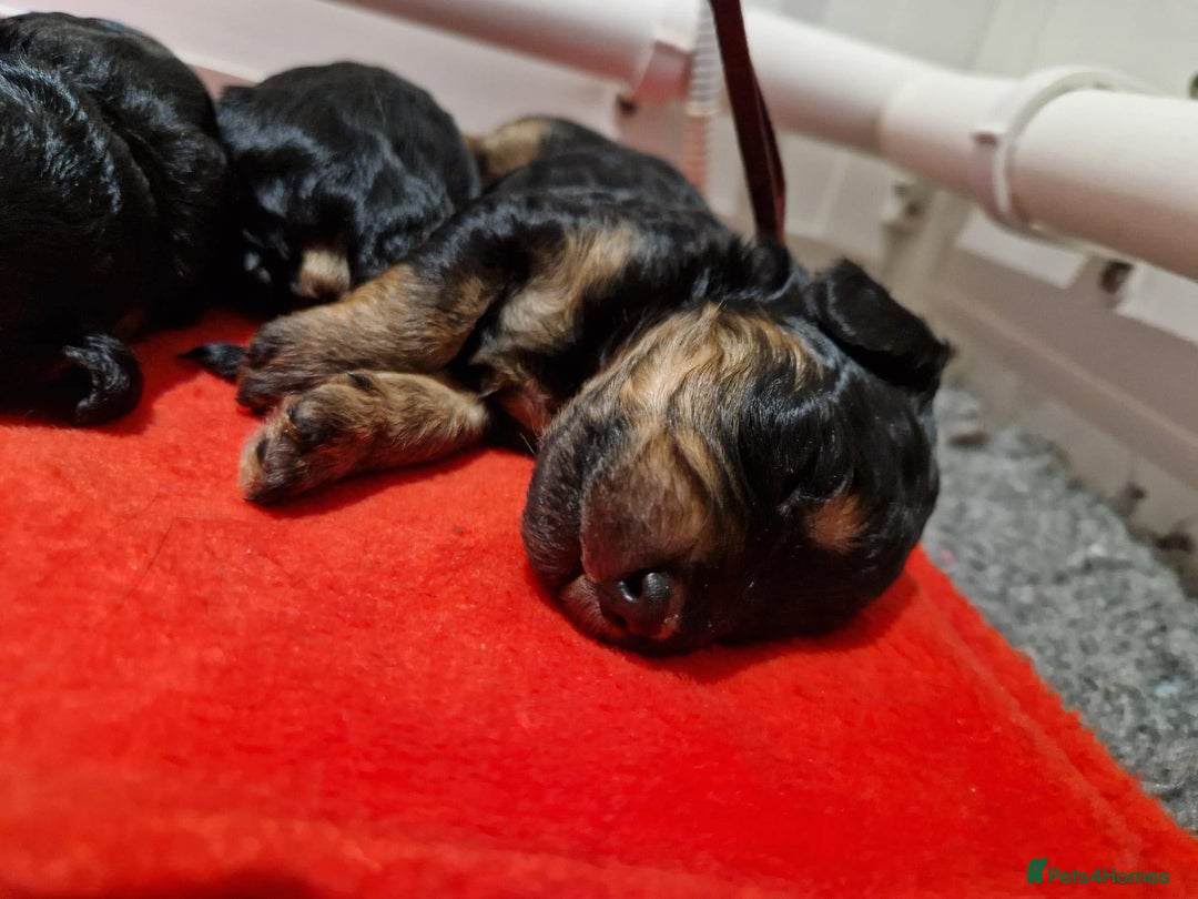 KC registered, health tested petite toy poodle available for stud. He is a vibrant phantom (black and tan) with beautiful clear markings. He is colour tested which shows he carries red and brown (chocolate) so can produce a lovely variety of colours. He is DNA tested through Laboklin and is clear of the poodle bundle - * PRA prcd - clear * PRA rcd4 - clear * Degenerative myelopathy - clear * NEwS - clear * VWD1 - clear He is a true toy in size at 10.5" tall and weighs 3.5kg. He is a family pet first and foremost. He lives with young children, other dogs and is walked / socialised daily which is reflected in his confident and playful temperament. He is sassy, loyal and affectionate as a poodle should be. You can see him loving life on instagram @tinydogripleyandco We are very experienced stud handlers having two more beautiful poodle stud boys. We are happy to answer any questions you may have, feel free to email, text or call. We offer two matings 48 hours apart and in the unlikely event of your girl missing we offer a free return of the same girl on her next season. Proof is required of an empty ultrasound scan and progesterone or cytology testing is required for the free return.