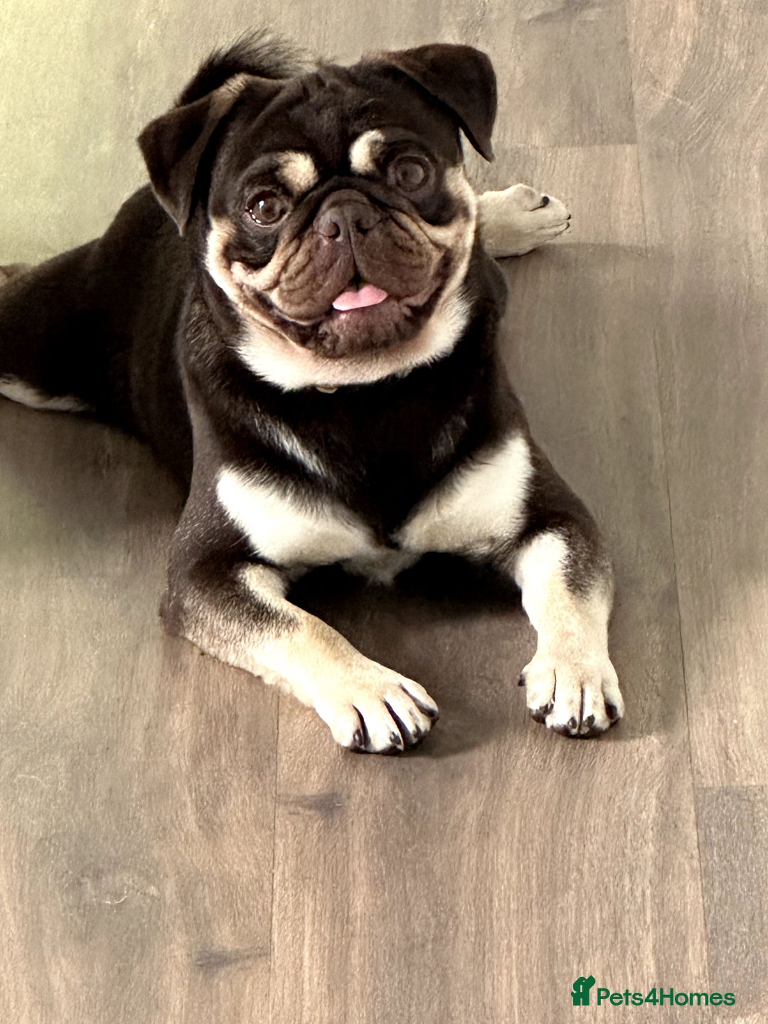 Having to part with our pug due to a change in Family circumstances….Not Neutered, Brilliant with children, Raised in our family home, Loves a walk and just craves love and attention… 1st to see her w