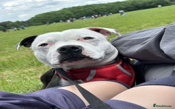 Staffordshire bull terrier for sale due to change of surcumstance. Kc registered pedigree papers. 5 years old very healthy friendly excellent behaviour. Great recall. Moving homes so sad to let her