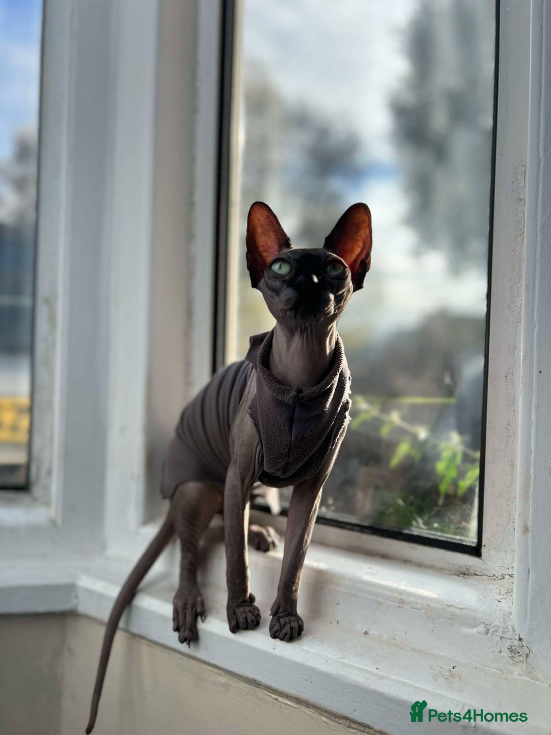 Apollo the male sphynx for sale. He is microchipped already with documents available on collection. Vaccinations and boosters up to date. Neutered. Vet checked. Parents were also checked. Images