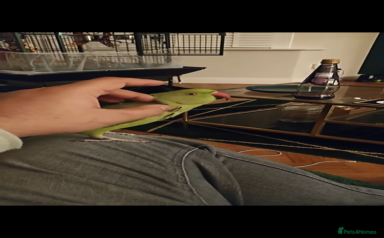Very friendly female, 6 months old. Used to kids and pets. Has been fed on a good diet, eats fruits and seeds. Will fly to you dance and has started to say hello. Sadly not enough time for her wantin