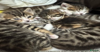 Kittens born 26th September 2025, ready to leave in around two weeks, Mum is champion snow blue eyes dad is Bengal mix. Kittens will come fully litter trained and weaned on to royal canin. Dewormed and deflead confident and used to children.