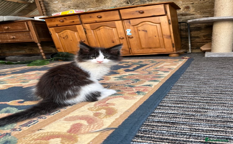 We have a beautiful litter of Maine Coon kittens looking for their forever families! Maine Coons are known for their gentle nature, playful personalities, and stunning looks — the perfect mix of elegance and affection. Available Kittens: Girl Black with tortoiseshell ginger markings Boy Grey-blue All kittens are active (not neutered), well-socialized, and full of ch
