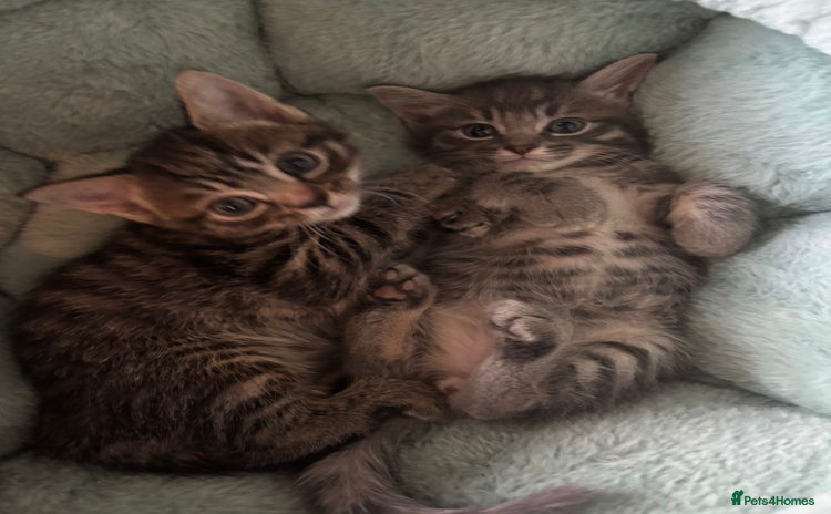 i have three beautiful kittens here, all about 12-13 weeks old. there very playful cats, all eat food in jelly (have to mash it up abit for them) and are litter trained. the two tabbies are £120 where