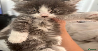 We are delighted to offer a beautiful shaded pure Maine Coon kitten, raised with love and care in our family home. This kitten has the classic gentle temperament of the Maine Coon breed – affectionate, intelligent, and playful. ✅ Breed: Pure Maine Coon (shaded coat) ✅ Health: Vet checked, fully weaned, wormed, flea treated ✅ Socialisation: Raised around people, used to ho