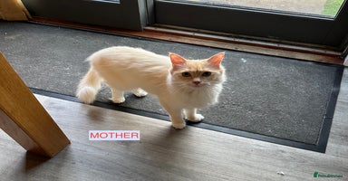 Here we have an adorable ragdoll boy , the last of his litter , father is a pure breed ragdoll & his mother is a Turkish van , he is very playful & eating cat food & is litter trained