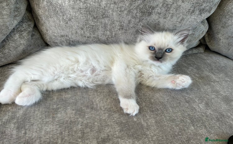 Female ragdoll kitten for sale, Shes 4 months old I cannot give her the care she deserves as i do not have enough time to give the attention she requires. She loves to be around people at all times Ca