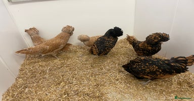 I have a home hatched and reared black and white polish bantam cockerel. Lovely looking boy with iridescent black plumage and a white head. Chilled personality and tame. I am having to rehire him as I
