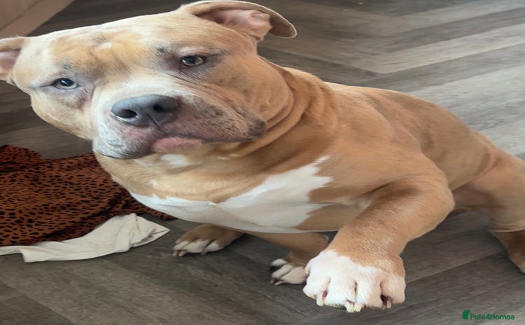 This is Bruno he will be 4 on the 24/11/25. I’ve had to make the hard decision to rehome him due to me not having enough time for him anymore. He’s a loving dog and loves attention. He does pull on l