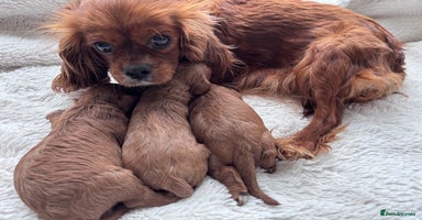 5 star licenced breeder ⭐️⭐️⭐️⭐️⭐️ are so to announce our beautiful litter of cavapoos they are absolutely stunning we have 3 girls and 1 boy available !!! Mum is our family pet betty she is a beautiful red cavapoo she has the most loving nature and is very kind and loyal she's been so good with the puppies Dad is also our family pet winston he is a kc registered heal
