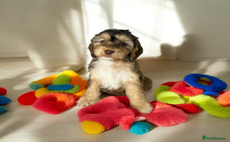 Lovely litter of jackapoos 1 boy 3 girls beautiful temperament, around children all the time Can be seen with mum and dad Must go to loving homes as that’s more important