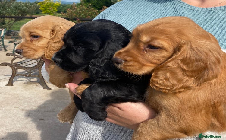 Beautiful working cocker spaniel puppies. Mum is from a pet home and dad is working. Pups can be seen with mum nan and aunt. Pups will be raised in a busy family environment and around young children