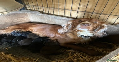My lovely Working Cocker spaniel puppies are looking for their forever homes. puppies will have been vaccinated and microchipped up-to-date with worming and fleaing also done. They have been brought up in my family home so they are very much used to everyday life and are very good around children very playful but also love to snuggle up for cuddles. The Puppys can be seen