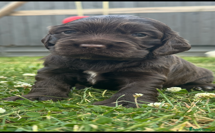 Ready now Wiggle Waggle are delighted to introduce our litter of Show Cocker Cockapoo. £2000 Choc Merle girl £1800 Choc boy Ready to leave 25/10 We are now ready to find them their very own forever families. We love our little pups so finding the best home for each of them is our main priority. . mum is our fantastic KC Choc Roan and Tan Show Cocker Spaniel. She has a