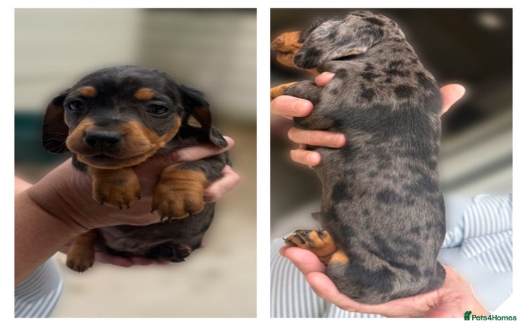 🐾 Miniature Dachshund Puppies 🐾 We are delighted to offer our gorgeous litter of 9 miniature dachshund puppies, all looking for loving forever homes. 💖 Mum is our much-loved family pet with a fantastic, gentle temperament. 🤎 Dad is a stunning chocolate & tan long-haired stud. Puppies available: 4 Chocolate & Tan Females 1 Black & Tan Female 1 Isabella Dapple Male