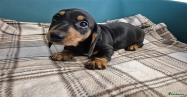 KC Registered Miniature Dachshund Puppies – Black & Tan (Smooth) 5 beautiful miniature smooth-haired Dachshund puppies available to loving homes. 6 weeks old 4 boys, 1 girl KC registered Black & Tan Vet health checked Microchipped & first vaccination done Raised in a family home, well socialised 📍 High Peak, Derbyshire Puppies will leave with KC papers, microch