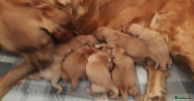 Hello, Welcome to my AD! Here we have our beautiful litter of my golden retriver. She has got her 1st litter of 6 puppies, 2 girls and 4 boys. Puppies very healthy chunky. They will come with KC paper