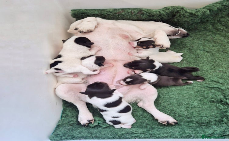 We have an amazing coloured, litter of jack russels home bred raised with there uncle pictured and raised in a house with toddlers. All are currently 3 weeks old all eyes open and all trying to stand.