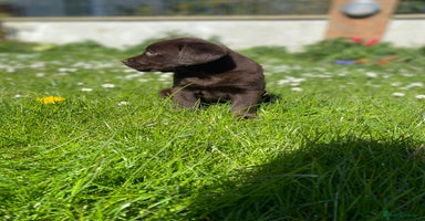 We have nine Labrador pedigree puppies, there are black, champagne and chocolate. There are girls and boys available. Mum and dad are both KC registered but puppies are not. Puppies have been wormed and flee treated. Puppies have been vet checked and microchipped. Dad has 15 championship winners in his 5 generation pedigree, these are all beautiful puppies We have chocola