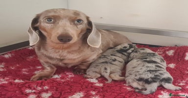 AVAILABLE 24th DECEMBER 3 LEFT 🐶 We are pleased to welcome 5 adorable KC registered Miniature Dachshund puppies from our beautiful, well tempered, calm, & loving family pet. 🐶 Mum is a beautiful Two-year-old Isabella tan and dapple Miniature Dachshund, an adorable and loving family pet. She weighs 4.8kg , KC Registered, PRA clear and this is her first litter; she will b
