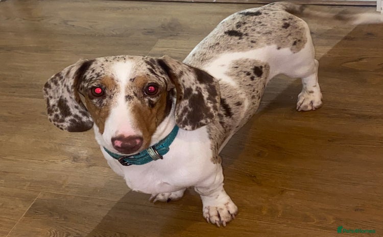 5 month old female Blue minature dachshund,beautiful colours we homed her at 8 weeks old as our family pet great with kids and other dogs/animals, unfortunately having to rehome her due to moving abro