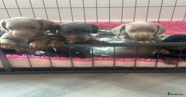 Only boys available now they will go to first come basis now Welcome to our advert for our beautiful litter of dachshund puppies. These puppies will be ready to leave us from the 16th December however I’m happy to keep them until you are ready message on 07 51 760 66 86 They all have wonderful little temperament we have 1 Isabelle and tan boy 1 blue and tan boy 2 Blac