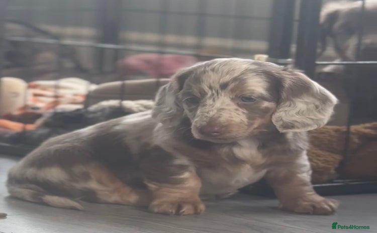 Our Beloved family dog has produced 4 stunning pups - an all female litter. 3 girls are available Girl 1 - smooth hair wild boar Girl 2 - smooth hair tri colour chocolate Isabella dapple Girl 3 -