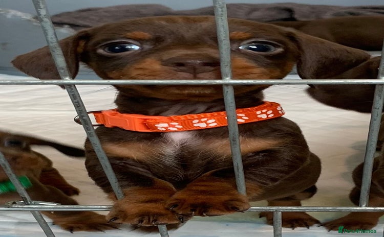 Beautiful miniature dachshunds for sale Mum and dad both family pets can be viewed with puppies. All chocolate and tan just like mum 💙💙 2 boys 💗💗💗💗 4 girls (one now reserved) Puppies are b