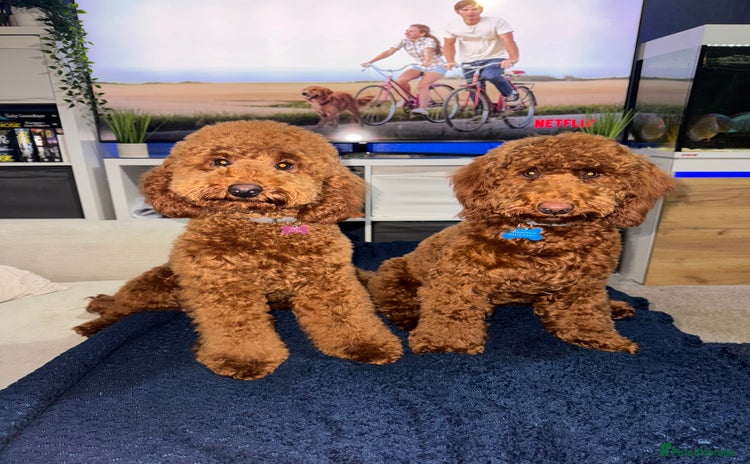 3 beautiful boys 💙💙💙 ready to leave ****************** Eve the perfect ****************** for one of your loved ones 🫶🏻 These are absolutely top class and have some beautiful markings, mother (cockerpoo) she is our family dog. She has the most loving personality and is a very placid dog. Father is a miniature poodle who is also a family dog. Mother can be seen when v