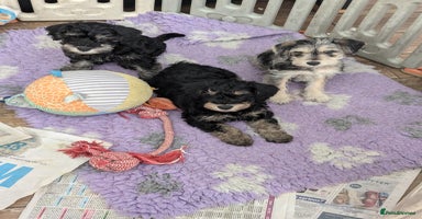 We have 4 beautiful cavapoo / bolonoodle puppies. They are very social and have both mother and father caring for them. They love playing and having cuddles, as they have been brought up with a family with children and a cat. We have: -2 black (very similar to their mother) cavapoo - 1 boy and 1 girl. - 2 cream - 1 boy with tan patches and 1 girl with black patches. The