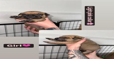 Ready for there forever homes! Born 19th of October, mum is a staff cross dad is a Catahoula Leopard Dog. Mum is fawn/tan big green eyes and has a loving temperament and can be seen with pups. Beautiful temperaments very loving little pups. Blue boy £600 Tri Merle boy £750 Lilac boy £600 Mum can be seen with pups